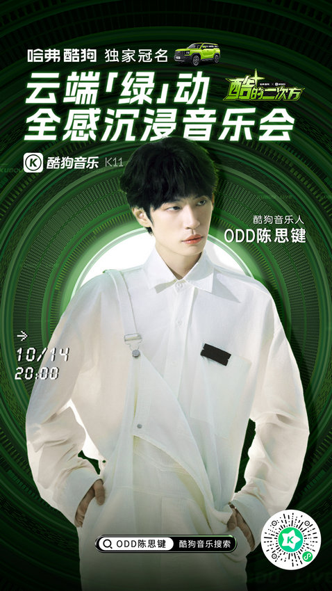 在云端参与一场音乐会是什么体验?酷狗音乐、酷狗直播与广州K11购物艺术中心联合打造,由哈弗酷狗独家冠名的“云端「绿」动”全感沉浸音乐会将于10月14日-10月15日正式开启。近日,官方公布了音乐会演出嘉宾:新生代创作歌手ODD陈思键、全能歌手希林娜依·高将空降“云端”,打造一场全感潮酷美学的视听盛宴。